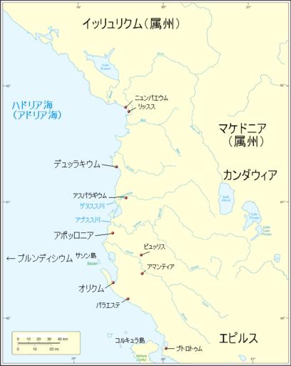 | Keywords: Map of Caesar's campaign in the Roman province of Macedonia (Japanese).png map of Julius Caesar's campaign in Ancient Albania 48 BC BC48年 ユリウス・カエサルのイッリュリア(現 のアルバニア)における戦役図 File Unmarked map of Albania png + own work by User Linguae 2016-2-6 original upload date User Linguae Released under the GNU Free Documentation License File Unmarked map of Albania png File Map of Caesar's campaign in Albania PNG Map of Caesar's campaign in Albania to Apollonia Jap png Caesar's Civil War | ||||