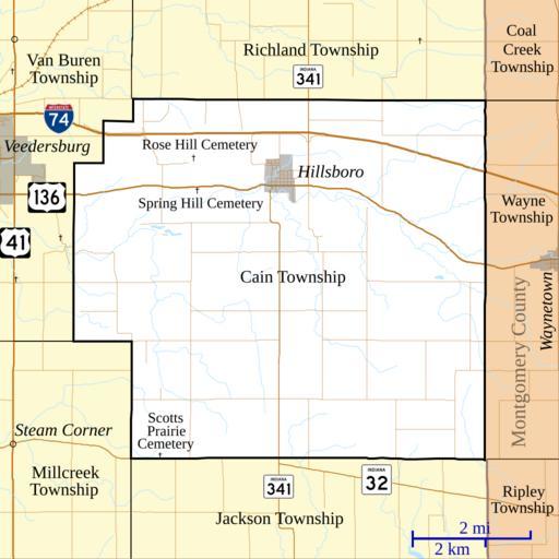 View Original: | Map of Cain Township, Fountain County, Indiana.svg (768x768) | |||