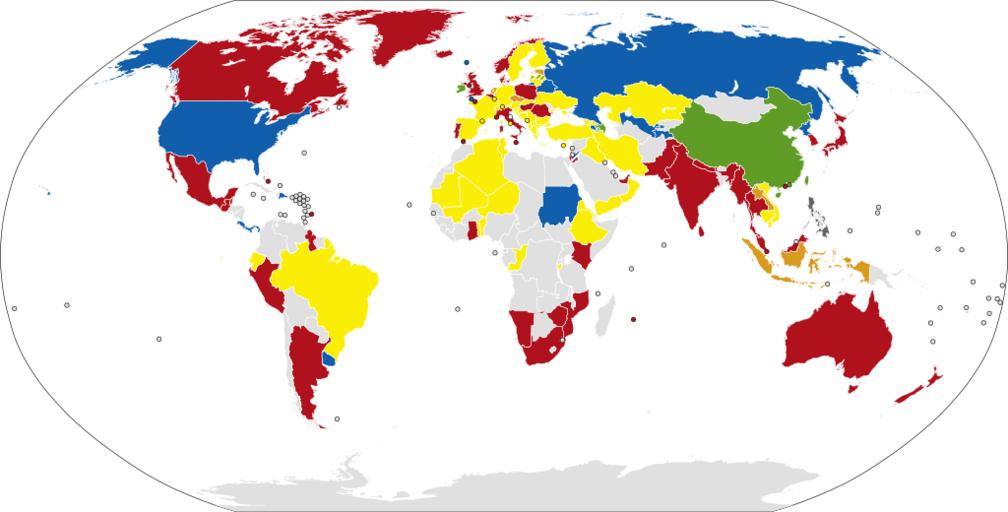 | Keywords: Map of colours of post boxes.svg de Karte der Farben von Post-Briefkästen Hellgrau keine Informationen fr Carte des couleurs de boîtes aux lettres par pays gris pas d'information Telephone kiosk in 1969 a new red colour was adopted for GPO street furniture designated B S 539 Post Haste Red After British Telecom and Royal Mail were split by the British Government BT continued to use BS539 exclusively whilst Royal Mail use both BS538 and BS539 in a seemingly random way Prior to 1859 there was no standard colour although there is a document in the BPMA archive indicating that optionally the lettering and Royal cypher could be picked out in white or black In 1859 a bronze green colour became standard until 1874 It took ten years for every box to be repainted during this period </ref> Yellow Australia Express Post Austria Brazil Bulgaria Cyprus red before 1960 Finland France Germany Deutsche Post Greece regular international mail Iran Malaysia Express Post Norway local mail Russia 1st Class Slovakia Slovenia Spain regular mail Sweden national and international mail Switzerland Liechtenstein Turkey Ukraine Vatican City Vietnam Blue Belarus Faroe Islands Germany many private postal companies Guernsey Alderney Dominican Republic Sark Italy Air Mail only United Kingdom Air Mail - 1933-1940 Portugal 1st Class Blue Mail only Sweden local mail Russia United States Green China Hong Kong red before 1997 Taiwan Ireland Some heritage boxes in the United Kingdom notably Stoke on Trent Rochester Scunthorpe Orange Czech Republic Estonia Indonesia Netherlands TNT N V /PostNL red before 2006 White San Marino Gray Philippines <references /> en Post box BlankMap-World-Microstates svg 2011-12-22 19 31 UTC BlankMap-World-Microstates svg NuclearVacuum derivative work NNW <span class signature-talk >talk</span> Post boxes by color |