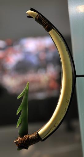 | Keywords: MAP Expo Maori Hameçon 13012012 3.jpg fr Leurre et hameçon jade néphrite os de baleine et coquille d'abalone invisible sur cette vue de profil culture maori 1800-1900 Présenté dans le cadre de l'exposition Maori leurs trésors ont une âme au Musée des Arts Premiers à Paris fin 2011-début 2012 Fishing hook nephrite whale bone and abalone shell not visible here Maori culture 1800-1900 In the exhibition Maori their treasures have got a soul in the Musée des Arts Premiers in Paris from the end of 2011 to the begining of 2012 2011-12-30 own Vassil cc-zero Uploaded with UploadWizard Maori fish hooks Nephrite objects Bone objects |