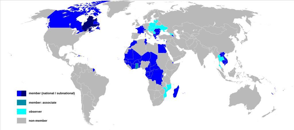 | Keywords: Map-Francophonie organisation 2008-en.svg fr Carte de la francophonie oct 2008 / en Map of francophony organization Mise à jour de Image Map-Francophonie organisation 2005 png Yug sur le fond Image BlankMap-World6 compact svg domaine public 2008-10-22 Bourrichon <gallery> Image Map-Francophonie organisation fr svg fr </gallery> Organisation internationale de la francophonie Maps of international organizations Distributional maps of the world | ||||