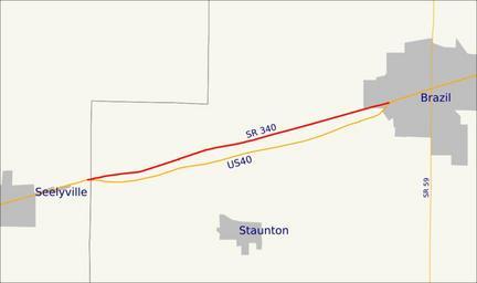 | Keywords: Map of Indiana State Road 340.svg This is a map which shows the route of Indiana State Road 340 in the United States My own work using freely-available shape data and custom-written MapScript applications 2008-03-04 Omnedon Road maps of Indiana SR340 |