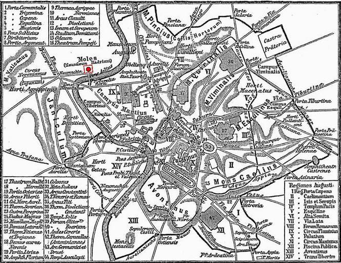 | Keywords: Map Rome Hadrian mausoleum.jpg Map of Ancient Rome location of Hadrian Mausoleum in red near Tiber river Personnal work Carte de la Rome antique en rouge localisation du Mausolée d'Hadrien près du Tibre 2006-02-28 own assumed Ursus Old maps of ancient Rome city Plans of Castel Sant'Angelo Rome |