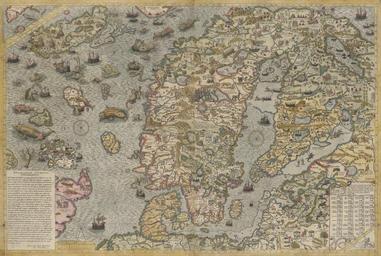| Keywords: Map of the Sea WDL3037.png Artwork ru агнус Олаус 1490-1557 fr Magnus Olaus 1490-1557 en Magnus Olaus 1490-1557 zh 马格纳斯 奥拉斯 1490-1557 pt Magnus Olaus 1490-1557 ar ماغنوس أولاوس 1490-1557 es Magnus Olaus 1490-1557 ru Ка та мо я fr Carte maritime en Map of the Sea zh 海洋 图 pt Mapa do Mar ar خريطة للبحر ru <i> Carta marina </i> шведского геог афа и исто ика Олауса агнуса является одним из самых анних точных ка тог афических изоб ажений скандинавского полуост ова Изоб ажение создано в Риме в 1539 году одним из самых выдающихся священнослужителей Скандинавии и соде жит множество деталей кото ые отсутствовали в анних ка тах этого егиона Пе воначально ка та п едназначалась для <i> Historia de gentibus septentrionalibus </i> Описания севе ных на одов и была издана п име но за 15 лет до появления этой г андиозной аботы Считается что Олаус агнус был пе вым кто п едложил идею создания Севе о-Восточного п охода Это вто ое издание ка ты опубликованное Антуаном Лафе и в 1572 году <br>Скандинавия des peuples du Nord la carte fut publiée quelques 15 ans avant l'apparition de cette œuvre majestueuse Olaus Magnus est généralement considéré comme le premier à avancer l'idée d'un Passage nord-oriental Il s'agit de la seconde édition de cette carte publiée par Antoine Lafréry en 1572 <br>Scandinavie of the Nordic peoples the map was published some 15 years before the appearance of this majestic work Olaus Magnus is generally regarded as the first to propound the idea of a Northeast Passage This is the second edition of this map published by Antoine Lafréry in 1572 <br>Scandinavia zh 这幅 <i> Carta marina 图</i> 出自瑞典 理学家兼历史学家奥拉斯·马格努斯之手,是 早精确描绘斯堪的纳维亚半岛的 图之 这幅 图 1539 年 罗马由拥 更高教会职务的斯堪的纳维亚天主教教会成员绘制草图,因此其中包含 很多其他该 区早 图中 没 的详细信息 该 图绘制的 衷是为了他的著 <i> 瑞典人和汪达尔人的历史(Historia de gentibus septentrionalibus) </i> (介绍北欧民族),该 图约早于该部巨著 15 年出版问世 人们普遍认为奥拉斯·马格努斯是首位提出 北航道的人 这幅 图是该 图的第二版,由 Antoine Lafréry 1572 年出版 <br>斯堪的纳维亚 pt A <i>Carta marina</i> do geógrafo e historiador sueco Olaus Magnus é uma das primeiras representações cartográficas precisas da península escandinava Desenhada em Roma em 1539 por um dos mais proeminentes escandinavos católicos do mais alto nível eclesiástico contém detalhes que faltam em muitos dos outros mapas pioneiros da região Inicialmente prevista para a sua <i>Historia de gentibus septentrionalibus</i> Uma descrição dos povos nórdicos o mapa foi publicado por volta de 15 anos antes do aparecimento desta magnífica obra Olaus Magnus é geralmente considerado o primeiro a propor a idéia da Passagem do Noroeste Esta é a segunda edição deste mapa publicada por Antoine Lafréry em 1572 <br>Escandinávia ar تُعتبر <i>الكارتا مارينا</i> للجغرافي والمؤرخ السويدي أولاوس ماغنوس إحدى أبكر التصويرات الدقيقة لشبه الجزرية الإسكندينافية وقد وضعت صيغتها في روما في عام 1539، على يد أحد أبرز الكاثوليكيين الإسكندينافيين في المرتبات العالية للخدمة الكنسية، إذ تحتوي على تفاصيل قلما توجد في العديد من الخرائط المبكرة لتلك المنطقة كان الهدف الأصلي منها درجها في عمله <i>هيستوريا دي جينتيبوس سيبتنتريوناليبوس</i> وصف للشعوب الشمالية ، ألا أنها نُشرت حوالي 15 سنة قبل ظهور عمله الجبار كما يُعتبر أولاوس ماغنوس أول من عرض فكرة ممر شمالي شرقي أما هذه النسخة فهي الطبعة الثانية للخريطة وكان قد نشرها أنطوان لافريري في عام 1572 <br>الدول الاسكندنافية es La <i>Carta marina</i> del historiador y geógrafo sueco Olaus Magnus es una de las primeras representaciones cartográficas precisas de la península escandinava Elaborada en Roma en 1539 por uno de los más prominentes católicos escandinavos del servicio eclesiástico superior contiene detalles que faltan en muchos otros mapas de la región Originalmente destinado a su <i>Historia de gentibus septentrionalibus</i> Una descripción de los pueblos nórdicos el mapa fue publicado unos 15 años antes de la aparición de esta majestuosa obra Olaus Magnus es generalmente considerado como el primero en proponer la idea de un paso del noreste Esta es la segunda edición de este mapa publicado por Antoine Lafréry en 1572 <br>Escandinavia 1572 ru Ка ты fr Cartes en Maps zh 图 pt Mapas ar خرائط es Mapas en 1 map on 2 sheets joined together copper engraving color 52 x 79 centimeters ru ациональная библиотека Швеции fr Bibliothèque nationale de Suède en National Library of Sweden zh 瑞典国家图书馆 pt Biblioteca Nacional da Suécia ar مكتبة السويد الوطنية es Biblioteca Nacional de Suecia http //hdl loc gov/loc wdl/swskb 3037 object history exhibition history credit line place of creation ru Финлянд
