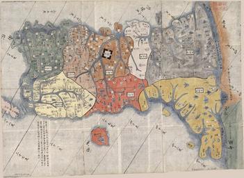 | Keywords: Map of South and North Korea in Eight Provinces WDL69.png Artwork ru Хаяси Шихей 1738-1793 fr Hayashi Shihei 1738-1793 en Hayashi Shihei 1738-1793 zh 林 石黑 1738-1793 pt Hayashi Shihei 1738-1793 ar هاياشي شيهي 1738-1793 es Hayashi Shihei 1738-1793 ru Ка та Южной и Севе ной Ко еи в восьми п овинциях fr Carte de la Corée du Sud et du Nord en huit provinces en Map of South and North Korea in Eight Provinces zh 南韩与北 八 的 图 pt Mapa da Coreia do Norte e do Sul em oito províncias ar خريطة لجنوب وشمال كوريا في ثماني محافظات ru Данная ка та Ко еи изготовленная в XIX веке в Японии выполненная пе ом тушью и аква елью является копией о игинала укописной ка ты составленной в 1785 году Хаяси Сихэем Sangoku tsūran zusetsu иллюст и ованная топог афическая ка та т ех ст ан а ней изоб ажены восемь п овинций кото ые стали основой сов еменных админист ативных п овинций и муниципальных ок угов Южной и Севе ной Ко еи В 1791 сёгунат Токугава зап етил асп ост анение пе воначального ва ианта ка ты Хаяси в том же году была также зап ещена и его книга <i> Kaikoku heidan </i> Обсуждение военных п облем мо ского госуда ства Сёгунат Токугава считал Хаяси опасным к итиком официальной политики за то что тот отстаивал необходимость пе еподготовки воинов саму аев для ведения войны на мо е fr Cette carte japonaise du XIXe siècle à la plume à l'encre et à l'aquarelle de la Corée fut peut-être copiée sur une carte manuscrite originale de 1785 par Hayashi Shihei <em>Sangoku tsūran zusetsu</em> <em>Aperçu général des trois royaumes</em> Elle représente huit provinces qui devinrent la base des provinces et municipalités administratives actuelles de la Corée du Sud et de la Corée du Nord Le shogunat Tokugawa interdit la carte originale de Hayashi en 1791 de même que son livre de la même année <em>Kaikoku heidan </em> <em>Discussion sur les problèmes militaires d'une nation maritime</em> Le shogunat Tokugawa considérait Hayashi comme un critique dangereux de la politique officielle car il soutenait qu il fallait rééduquer les guerriers samouraïs et se préparer à la guerre navale en This 19th-century Japanese pen-and-ink and watercolor map of Korea possibly was copied from an original manuscript map of 1785 by Hayashi Shihei Sangoku tsūran zusetsu Illustrated survey of three countries It depicts eight provinces that became the basis of the current administrative provinces and municipalities in South Korea and North Korea The Tokugawa shogunate banned Hayashi s original map in 1791 along with his book of the same year <i>Kaikoku heidan </i> Discussion of the military problems of a maritime nation The Tokugawa shogunate considered Hayashi a dangerous critic of official policy for arguing the need to reeducate Samurai warriors and prepare for naval warfare zh 这幅 19 世纪日 的笔墨水彩 图可能是对 1785 年林子平 绘 Sangoku tsūran zusetsu (三国 览图说) 图的翻版 该 图 描绘的 8 个 就是现今韩国和 行政 和直辖市的基 1791 年,德 幕 查禁了林子平的原始 图及其著 <i> Kaikoku heidan </i> (海国兵谈) 德 幕 认为林子平是 个危险的政 政策批评家,因为他认为 要对武士进行再教育 且 要准备海战 pt Este mapa japonês da Coreia em aquarela e bico de pena do século XIX foi possivelmente copiado de um mapa manuscrito original de 1785 elaborado por Shihei Hayashi Sangoku tsūran zusetsu Levantamento ilustrado de três países Ela retrata oito províncias que se tornaram a base das atuais províncias administrativas e municípios da Coreia do Sul e da Coreia do Norte O shogunato Tokugawa proibiu o mapa original de Hayashi em 1791 juntamente com seu livro do mesmo ano <i>Kaikoku heidan</i> Discussão dos problemas militares de uma nação marítima O shogunato Tokugawa considerava Hayashi um crítico perigoso da política oficial por alegar a necessidade de reeducar guerreiros samurais e preparar-se para a guerra naval ar تعود هذه الخريطة اليابانية لكوريا المرسومة بالريشة والحبر والألوان المائية إلى القرن التاسع عشر، ومن الممكن أن تكون قد نُسخت من خريطة مخطوطة أصلية في 1785 على يد هاياشي شيهاي، مسح مصوّر لثلاثة بلدان وتصور المقاطعات الثمانية التي أصبحت أساسا للمقاطعات الإدارية الحالية والبلدية لكوريا الجنوبية وكوريا الشمالية وقد حظرت حكومة التوكوغاوا الشوغونية خريطة هاياشي الأصلية في 1791، بالإضافة إلى كتابه من نفس العام، <i>كايكوكو هايدان </i> مناقشة في المشاكل العسكرية لدولة بحرية كانت حكومة التوكوغاوا الشوغونية تعتبر هاياشي ناقدا خطيرا للسياسة الرسمية لجدليته التي تدعو إلى إعادة تثقيف محاربي الساموراي وإعدادهم للحروب البحرية es Este mapa japonés de Corea en pluma y tinta y acuarela del siglo XIX fue probablemente copiado de un manuscrito original de Hayashi Shihei de 1785 «Sangoku tsūran zusetsu» estudio ilustrado de tres países Representa ocho provincias