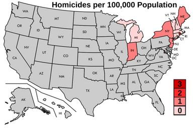 | Keywords: Map of US Murder Rate in 1900.svg en Map of US homicide rate in 1900 per 100 000 population http //www cdc gov/nchs/data/vsus/vsrates1900_40 pdf Data pgs 366-401 2016-04-02 own Delphi234 other versions Data wikitable sortable State 1900 1905 1910 1915 1920 1925 1930 1935 1940 - Alabama 17 0 19 7 22 0 16 4 - Arizona 11 9 9 8 9 2 - Arkansas 13 8 15 3 10 0 - California 10 8 12 0 8 0 7 0 6 6 6 4 4 9 - Colorado 11 7 10 8 9 3 8 2 8 5 6 1 4 6 - Connecticut 0 1 5 2 4 3 5 3 9 3 7 3 2 2 0 1 8 - Delaware 4 1 4 1 8 4 9 1 4 5 - Florida 20 6 35 9 24 5 24 9 21 6 - Georgia 19 9 22 3 20 0 - Idaho 4 6 3 6 4 1 3 4 - Illinois 7 2 10 5 10 5 7 3 4 6 - Indiana 1 5 3 2 4 4 5 1 4 7 6 5 6 4 4 5 3 3 - Iowa 2 7 3 2 2 0 1 3 - Kansas 6 9 4 7 5 2 5 9 4 8 2 2 - Kentucky 11 7 9 0 15 6 16 8 19 0 14 3 - Louisiana 14 0 22 5 18 6 16 5 12 0 - Maine 1 4 2 2 1 7 2 3 1 4 2 1 1 8 1 5 1 5 - Maryland 3 1 5 8 4 8 7 5 7 8 6 2 7 7 - Massachusetts 0 8 1 3 2 7 3 2 2 1 2 7 1 8 1 8 1 5 - Michigan 0 7 0 6 2 5 3 0 5 5 7 4 6 7 4 1 3 0 - Minnesota 3 3 3 3 3 1 3 7 3 8 2 5 1 2 - Mississippi 19 7 20 4 22 5 23 8 17 0 - Missouri 8 9 7 9 12 2 11 3 10 1 5 4 - Montana 9 7 11 3 8 5 9 5 11 5 6 3 5 2 - Nebraska 4 2 4 0 3 5 3 5 1 0 - Nevada 10 9 13 9 8 2 - New Hampshire 0 2 0 7 0 9 2 3 1 8 1 3 0 9 1 1 1 4 - New Jersey 1 0 1 6 4 4 4 3 4 2 5 0 5 5 4 5 2 3 - New Mexico 14 5 9 0 6 4 - New York 1 4 2 6 4 9 4 6 4 0 5 1 5 6 4 5 2 8 - North Carolina 9 7 9 0 11 0 11 6 10 8 - North Dakota 2 0 3 6 2 5 1 4 - Ohio 4 4 6 0 6 9 7 8 9 2 7 0 4 6 - Oklahoma 11 0 9 3 6 4 - Oregon 4 1 4 0 3 6 3 5 3 3 - Pennsylvania 4 7 4 8 5 6 6 0 5 1 3 8 2 9 - Rhode Island 2 6 1 9 4 0 3 0 1 8 1 8 2 0 1 6 1 4 - South Carolina 15 3 12 6 13 1 14 5 13 2 - South Dakota 1 9 2 1 2 2 - Tennessee 13 9 16 7 19 3 20 7 16 6 - Texas 14 1 9 6 - Utah 5 6 8 4 5 1 5 7 5 3 4 6 2 9 - Vermont 0 2 0 2 0 1 9 2 3 0 6 1 4 0 3 0 8 - Virginia 12 2 11 1 10 2 11 9 13 4 10 5 - Washington 7 1 9 0 5 1 5 6 5 1 4 6 3 5 - West Virginia 12 4 13 5 10 9 8 4 - Wisconsin 1 7 2 1 1 6 2 2 3 1 1 3 1 3 - Wyoming 11 1 10 6 7 2 5 6 - Washington DC 3 6 9 1 8 4 9 7 10 4 13 2 13 3 15 3 13 7 - class sortbottom United States 1 2 2 1 4 6 5 9 6 8 8 3 8 8 8 3 6 2 cc-zero Maps of crime statistics for the United States |