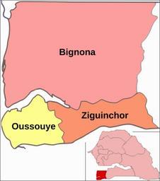 Keywords: Map-ziguinchor.svg Map of Ziguinchor region and departments Carte de la région de Ziguinchor et des départements Own 2006-06-20 Patricia fidi Locator maps of departements of Senegal