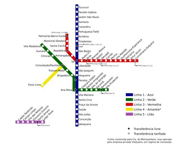 Keywords: Mapa metro sp.svg en Map of São Paulo subway lines under Metrô-SP administration pt Mapas das linhas administradas pela Cia do Metropolitano de São Paulo own Fsolda 2010-12-25 Public transport maps of São Paulo city