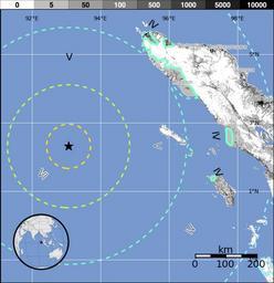| Keywords: Mapa terremoto de Indonesia de 2012.png es El terremoto del océano Índico de 2012 fue un terremoto de magnitud 8 6 grados en la escala de magnitud de momento que sacudió a Indonesia Tailandia Malasia Sri Lanka India Bangladesh Vietnam Maldivas y Singapur Además obligó a emitir una advertencia de tsunami para 20 países debido a la magnitud del sismo y una posterior réplica de 8 2 grados en la escala de magnitud de momento 2012-04-11 http //earthquake usgs gov/earthquakes/pager/events/us/c000905e/exposure png USGS PD-USGov Uploaded with UploadWizard Earthquake maps |