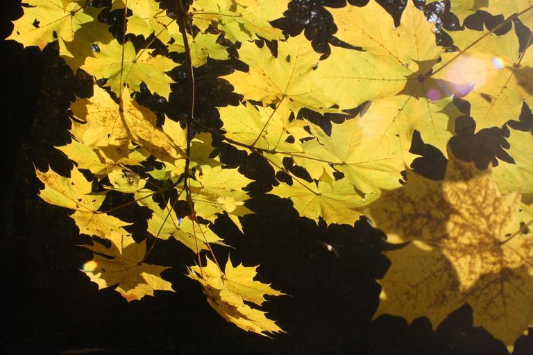 Keywords: maple leaves golden october autumn sunny leaves emerge yellow fall color
