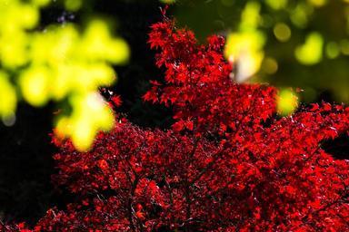 Keywords: maple maple leaves autumn sun back light red yellow green bush leaf leaves evening dusk twilight mood