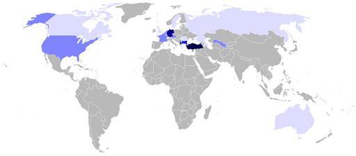 | Keywords: MapOfTurkishSpeakers.png MapOfTurkishSpeakers-vector svg Turkish speakers in the countries of the world by shades of blue based on Image BlankMap-World png The map shades the whole area within the national borders of each country with the colors defined in the legend below Numbers are partly based on Gordon Raymond G Jr ed 2005 Ethnologue Languages of the World Fifteenth edition http //www ethnologue com/show_language asp code tur Further references for the numbers are to be found at the end of Turkish diaspora article on the English Wikipedia Legend legend 000250 Official language Turkey Cyprus Macedonia at the municipal level Kosovo at the municipal level 00038c More than 1 000 000 speakers Germany 0006fc Between 500 000 - 1 000 000 speakers Bulgaria Iraq Greece 8184ff Between 100 000 - 500 000 speakers France Netherlands Belgium Austria United States Uzbekistan dddeff Between 25 000 - 100 000 speakers United Kingdom Australia Azerbaijan Canada Russia Sweden Denmark Switzerland Romania b9b9b9 Less than 25 000 speakers/No speakers Other countries τουρκόφωνους ληθυσμούς με α οχρώσεις του μ λε βασισμένος στον Image BlankMap-World png Οι σκιές στο χάρη καταλαμβάνουν όλη την εριοχή κάθε χώρας με τα χρώματα ου καθορίζονται στη λεζάντα ου ακολουθεί Τα νούμερα βασίζονται εν μέρει στο Gordon Raymond G Jr ed 2005 Ethnologue Languages of the World Fifteenth edition http //www ethnologue com/show_language asp code tur Λεζάντα legend 000250 Ε ίσημη γλώσσα Τουρκία Κύ ρος ΠΓΔ της ακεδονίας σε δημοτικό ε ί εδο Κόσοβο σε δημοτικό ε ί εδο 00038c Πάνω α ό 1 000 000 ομιλητές Γερμανία 0006fc Ανάμεσα σε 500 000 και 1 000 000 ομιλητές Βουλγαρία 8184ff Ανάμεσα σε 100 000 και 500 000 ομιλητές Γαλλία Ολλανδία Βέλγιο Αυστρία ΗΠΑ Ουζμ εκιστάν dddeff Ανάμεσα σε 25 000 και 100 000 ομιλητές Ελλάδα Ηνωμένο Βασίλειο Αυστραλία Αζερμ αϊτζάν Καναδάς Ρωσία Σουηδία Δανία Ελβετία Ρουμανία b9b9b9 Λιγότεροι α ό 25 000 ομιλητές ή καθόλου ομιλητές Οι υ όλοι ες χώρες Türkisch-Sprecher auf der Welt in blauen Farbabstufungen basierend auf Image BlankMap-World png The map shades the whole area within the national borders of each country with the colors defined in the legend below Numbers are partly based on Gordon Raymond G Jr ed 2005 Ethnologue Languages of the World Fifteenth edition http //www ethnologue com/show_language asp code tur Further references for the numbers are to be found at the end of Turkish diaspora article on the English Wikipedia Legende legend 000250 Amtssprache Türkei Zypern Mazedonien regional Kosovo regional 00038c Mehr als 1 000 000 Sprecher Deutschland 0006fc Zwischen 500 000 1 000 000 Sprecher Bulgarien Irak Griechenland 8184ff Zwischen 100 000 500 000 Sprecher Frankreich Niederlande Belgien Österreich Vereinigte Staaten Usbekistan dddeff Zwischen 25 000 100 000 Sprecher Großbritannien Australien Aserbaidschan Kanada Russland Schweden Dänemark Schweiz Rumänien b9b9b9 Weniger als 25 000 Sprecher/keine Andere Länder Turks sprekenden in de landen van de wereld met tinten van de kleur blauw gebaseerd op Image BlankMap-World png De kaart kleurt het hele gebied binnen de nationale grenzen van elk land met de kleuren die zijn gedefinieerd in de legenda hieronder Nummers zijn gedeeltelijk gebaseerd op Gordon Raymond G Jr ed 2005 Ethnologue Languages of the World Vijftiende editie http //www ethnologue com/show_language asp code tur Verdere verwijzingen voor de nummers zijn te vinden aan het einde van het artikel Turkse diaspora in de Engelstalige Wikipedia Legenda legend 000250 Officiële taal Turkije Cyprus Macedonië op gemeentelijk niveau Kosovo op gemeentelijk niveau 00038c Meer dan 1 000 000 sprekers Duitsland 0006fc Tussen 500 000 - 1 000 000 sprekers Bulgarije Irak Griekenland 8184ff Tussen 100 000 - 500 000 sprekers Frankrijk Nederland België Oostenrijk Verenigde Staten Oezbekistan dddeff Tussen 25 000 - 100 000 sprekers Verenigd Koninkrijk Australië Azerbeidzjan Canada Rusland Zweden Denemarken Zwitserland Roemenië b9b9b9 Minder dan 25 000 sprekers / geen De overige landen língua turca nos países do mundo em tons de azul com base na Image BlankMap-World png Os tons do mapa estão em toda a área dentro das fronteiras nacionais de cada país com as cores definidas na legenda abaixo Os números são parcialmente baseados em Gordon Raymond G Jr ed 2005 Ethnologue Languages of the World edição XV http //www ethnologue com/show_language asp code tur Outras referências para os números podem ser encontrados no final do artigo Diaspora Turca na Wikipédia em Inglês Legenda legend 000250 Língua oficial Turquia Chipre Macedônia a nível municipal e Kosovo a nível municipal ; 00038c Mais de 1 000 000 de falantes Alemanha; 0006fc Entre 500 000 e 1 000 000 falantes Bulgária Iraque e Grécia; 8184ff Entre 100 000 e 500 000 falantes França Países Baixos Bélgica Áustria Estados Unidos e Uzbequistão; dddeff Entre 25 000 e 100 000 falantes Reino Unido Austrália Azerbaijão Canadá Rússia Suécia Dinamarca Suíça e Romênia; b9b9b9 Menos de 25 000 falantes/nenhum falante Demais países Turski nijanse plave pokazuje broj osoba koji govore Image BlankMap-World png napravio koristeći kartu Cijelo je područje unutar granica svake države sljedeće definicije su ispunjene bojama Broj zemalja prvenstveno za tursko-govornog ljudi Gordon Raymond G Jr ur 2005 Narodoznanstvo jezicima svijeta Petnaesti izdanje http //www ethnologue com/show_language asp code tur izvor je korišten O