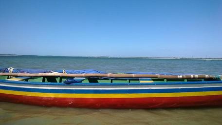 Keywords: mar boat summer sky horizon holidays heat coconut trees