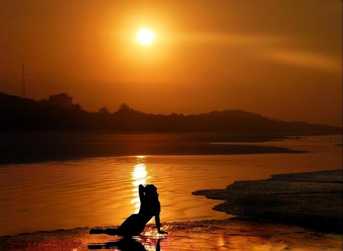 Keywords: mar sunset west ocean reflection beira mar landscape nature brazil quiet holidays litoral water tranquility by sunsets eventide against light rays of sunshine horizon sky twilight clouds dusk