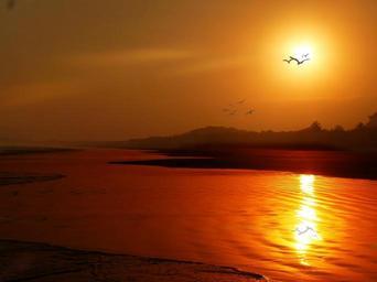 Keywords: mar sunset west ocean reflection beira mar landscape nature brazil quiet holidays