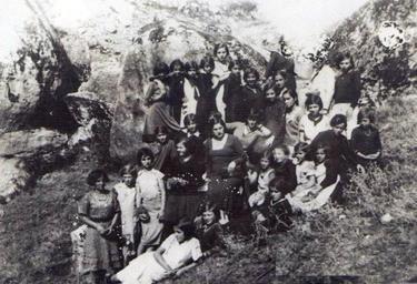 | Keywords: Mara Josifoska - Gjurgja vo 1931.jpg mk а а Јосифоска се наоѓа во с едина т ета десно од учителката со плетенка и сиво блузиче со бели јаки како ученичка во Женската занатска школа адничка школа Сликани се во околината на П илеп 1931 http //www oldprilep com/wp-content/uploads/2012/05/267604_164265773642906_100001784547553_370275_6601254_n jpg Photo archiv of Josifovska 1920-1942 author 1931 PD-Macedonia Mara Josifoska | ||||