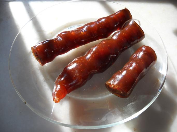 Keywords: Maras Sucugu.jpg en Maraş Sucuğu Turkish Desert de Maraş Sucuğu Türkische Süßigkeit own Martin Henke 2012-01-15 Cc-zero Turkish pestil and cevizli sucuk Food industry in Turkey