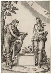 | Keywords: Marcantonio Raimondi - Two Women with the Signs of Libra and Scorpio.jpg Two Women with the Signs of Libra and Scorpio Engraving only state; sheet trimmed 11 5/8 x 8 in 29 5 x 20 3 cm http //stlouis art museum/emuseum/code/emuseum asp style Browse currentrecord 1 page search profile objects searchdesc 86 1996 quicksearch 86 1996 newvalues 1 newstyle single newcurrentrecord 1 Saint Louis Art Museum official site 1517-20 creator Marcantonio Raimondi PD-old-100 Marcantonio Raimondi 16th-century engravings Prints in the Saint Louis Art Museum Libra constellation Scorpius |