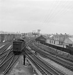 | Keywords: railways railroads trains tracks church road churchroad ireland saturday 12th march 1960 1960s sixties james p. o'dea jamespodea church road junction churchroadjunction dublin leinster brennan's brennans dublin-belfast railway bridge dublinbelfastrailwaybridge royal canal royalcanal m.g.w.r. mgwr midlands & great western railway midlandsgreatwesternrailway west road westroad signal cabin signalcabin sleeper creosoting plant sleepercreosotingplant creosote smith & pearson smithpearson signal arms signalarms junction newcomen road newcomenroad ossory road ossoryroad structural steel structuralsteel engineers iron works ironworks national library of ireland nationallibraryofireland o'dea photographic collection odeaphotographiccollection blackandwhite monochrome vehicle train outdoor sport railroad locomotive black and white We thought this was the view from a railway signal box at a Church Road in Roscommon, and as there are quite a few Church Roads in County Roscommon, we asked for help. Apparently, ask and you shall receive because it turns out this was Church Road Junction, but not in Roscommon at all! Flying Snail pinpointed the location exactly: "That's Church Road Jct in Dublin, down in the North Wall yards area. The view is looking west, with the bridge of the Dublin-Belfast line on the horizon. As the signal on one of the gantries is in the 'off' position, the loco is coming towards O'Dea presumably to shunt or take out of a goods train. The Brennan's shop is now an ordinary residence." And Eagle Eye eyelightfilms spotted the sign on the horizon for Smith & Pearson, Structural steel, engineers and iron works, Newcomen Works, Ossory Road, Dublin 3. Date: Saturday, 12 March 1960 NLI Ref.: ODEA 19/56 We thought this was the view from a railway signal box at a Church Road in Roscommon, and as there are quite a few Church Roads in County Roscommon, we asked for help. Apparently, ask and you shall receive because it turns out this was Church Road Junction, but not in Roscommon at all! Flying Snail pinpointed the location exactly: "That's Church Road Jct in Dublin, down in the North Wall yards area. The view is looking west, with the bridge of the Dublin-Belfast line on the horizon. As the signal on one of the gantries is in the 'off' position, the loco is coming towards O'Dea presumably to shunt or take out of a goods train. The Brennan's shop is now an ordinary residence." And Eagle Eye eyelightfilms spotted the sign on the horizon for Smith & Pearson, Structural steel, engineers and iron works, Newcomen Works, Ossory Road, Dublin 3. Date: Saturday, 12 March 1960 NLI Ref.: ODEA 19/56 |