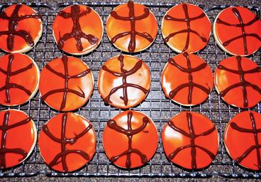 Keywords: cookies icing basketballs orange brown cooling counter pattern texture abstract bright symmetry