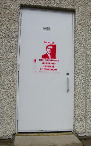 Keywords: MarcKellyGraffitiUniversityofOttawa.JPG en Marc Kelly's political graffiti on University of Ottawa property Own UofOVoice Graffiti in Ottawa University of Ottawa Stencil graffiti in Canada
