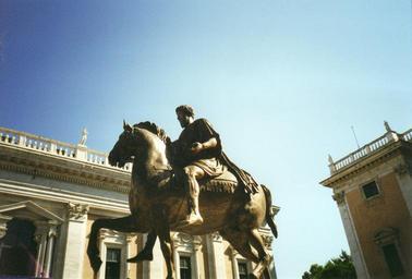 Keywords: Marco Aurelio.jpg Statua di Marco Aurelio copia in Piazza del Campidoglio a Roma Italia Lavoro personale My own work 2000-07 Archeologo it Italian Wikipedia Archeologo Replica of the Equestrian statue of Marcus Aurelius Rome