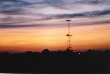Keywords: Marconi Tower at Sunset.jpg Marconi Tower a World War II Chain Home antenna tower at Marconi Research Centre at sunset own 2001 Wodin File Marconi Tower at Sunset small jpg reduced size Wodin Sunsets of the United Kingdom Chain Home radars