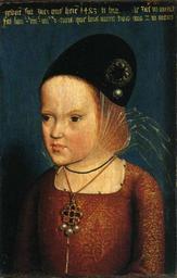 | Keywords: Margarethe of Austria Young.jpeg artist The Archduchess Margaret of Austria 10 January 1480 “ 1 December 1530 was a Habsburg princess the daughter of Maximilian I Holy Roman Emperor and Mary of Burgundy Archduchess Margaret as finance of King Charles VIII of France 15th century Margarete von Ă–sterreich als Braut des französischen Thronfolgers This painting is believed to be the right part of a dyptic with her brother Philip The Fair of Austria The Philadelphia Museum of Art <br> 100px <small>In 1483 she was betrothed to the Dauphin of France later King Charles VIII of France bringing with her a dowry of Franche-ComtĂ© and Artois and was transferred to the guardianship of King Louis XI of France see Treaty of Arras 1482 After Charles renounced the treaty and married Anne of Brittany Margaret was returned to her father in 1493 In 1497 she was married to Juan Prince of Asturias Infante of Spain 1478 “1497 the son and heir of King Ferdinand II of Aragon and Queen Isabella I of Castile but he died after only six months Juan left her pregnant but she later gave birth to a stillborn child In 1501 she married Philibert II Duke of Savoy 1480 “1504 who died three years later This marriage had been childless as well She was appointed for the first time as governor of the Habsburg Netherlands 1507 “1515 and guardian of her young nephew Charles the future Charles V Holy Roman Emperor </small> 1483 - attribued to The master of the Magdalen Legend painting 29 H ; 20 L MusĂ©e national du Château de Versailles MusĂ©e national du Château de Versailles http //www kleio org/bilderkatalog/habsburger/148 htm 2007-08-23<sup></sup> other versions http //www culture gouv fr/public/mistral/joconde_fr ACTION RETROUVER FIELD_98 INSC VALUE_98 20inscription 20donnant 20l 27identit e9 20du 20mod e8le NUMBER 48 GRP 40 REQ 28 28inscription 20donnant 20l 27 27identit e9 20du 20mod e8le 29 20 3aINSC 20 29 USRNAME nobody USRPWD 4 24 2534P SPEC 3 SYN 1 IMLY MAX1 1 MAX2 1 MAX3 100 DOM All 20 20 20 Catalogue Joconde PD-old-100 DEFAULTSORT Anonymous Margaret of Austria 1490 around 15th-century unidentified painters 15th-century portrait paintings location missing Margaret of Austria 15th-century paintings not categorised by year 15th-century portrait paintings of girls at bust length Females with black headwear in art Renaissance portraits of girls Portrait paintings with blue background 15th-century girls Portrait paintings in the MusĂ©e national du Château de Versailles |