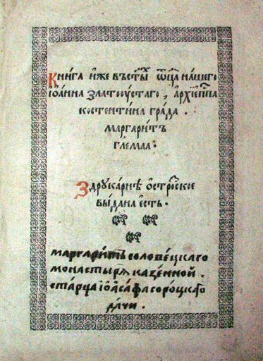 Keywords: Margarit2.jpg Иоанн Златоуст а га ит титульный лист Ост ожская типог афия 1595 г библиотека Соловецкого монасты я http //virtmuseum aonb ru/sol/sol_4 html own 2014 PD-old Ostroh Typography