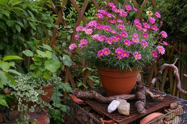 Keywords: margaritte flowerpot terracotta fired clay deco garden plant decorative pink road potsherds