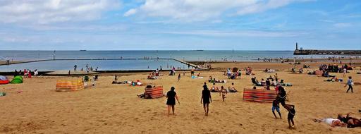 Keywords: sandy beach sandybeach margate kent uk tidal pool tidalpool outdoor landscape seaside shore beach Sandy beach in Margate with a tidal pool. Sandy beach in Margate with a tidal pool.