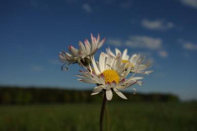 Keywords: margin rides flower mage rites spring jewelry lilies flowers purple flower yellow flower beautiful flower daisy close details pink pink daisy sky background macro m blossom bloom