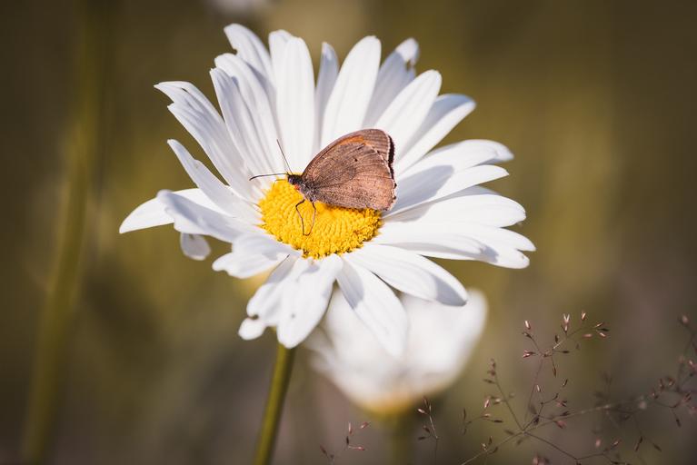 Keywords: marguerite composites leucanthemum flower white white flower blossom bloom white blossom gardening gardening nature close stainless cohesive samtfalter satyridae satyrinae summer butterfly animal insect flight insect evening sun