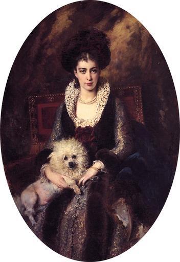 | Keywords: Maria Alekseevna Makovskaya by Konstantin Makovsky (1839-1915).jpg en Portrait of the artist's wife Maria Alekseevna Makovskaya née Matavtina 1869-1919 signed in Cyrillic 'K Makovskii' centre right oil on canvas oval 142 x 97 cm http //www christies com/LotFinder/lot_details aspx from searchresults intObjectID 5379970 sid 89fc0e76-e23b-444c-8b59-6be3a7d177c1 Christie's than http //auction-rusenamel ru/items id 104000 Russian enamel Creator Konstantin Makovsky century 19 PD-old-auto 1915 Portraits by Konstantin Makovsky 19th-century portrait paintings with dogs Oval portraits of women Portrait paintings of artist's wife Private collections in Russia Russkaya emal |