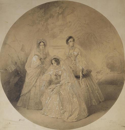 | Keywords: Maria Alexandrovna, Alexandra Fedorovna and Alexandra Iosiphovna by M.Zichy.jpg Зичи ихаил Александ ович «По т ет импе ат ицы а ии Александ овны вдовствующей импе ат ицы Александ ы Федо овны и великой княгини Александ ы Иосифовны» низу сп ава подпись и дата Zichy 1857 ягкий че ный и г афитный ка андаши местами т онут белилами; к уг бумага наклеена на паспа ту 390 х 400 П оисхождение пост в 1928 че ез Г Ф Инв ОР-38954 Рисунок поступил в Э митаж как по т ет т ех великих княгинь Тем не менее сходство двух пе сонажей с обеими импе ат ицами не вызывает сомнений Ряд обстоятельств позволяет связать исунок с то жествами сопутствовавшими ко онации импе ато а Александ а II и назвать имя т етьего пе сонажа Как записала в своем дневнике А Ф Тютчева ф ейлина импе ат ицы а ии Александ овны на п отяжении нескольких дней 2 3 9 сентяб я 1856 г в К емлевском дво це в оскве уст аивались п идво ные маска ады и балы на кото ых п исутствовали и высочайшие особы 3 сентяб я 1856 г состоялся на одный бал куда допускались все классы общества и кото ый почтили своим п исутствием импе ат ица великие князья и княжны Там же была и великая княгиня Александ а Иосифовна в костюме наполовину польском ото оченном мехом оттенявшем по азительно ее к асоту Тютчева 2000 с 262 Таким об азом ешается имя т етьего пе сонажа по т ета это великая княгиня Александ а Иосифовна жена великого князя Константина иколаевича Возможно Зичи по долгу службы за исовывавший п идво ные события сделал яд п едва ительных наб осков по кото ым в 1857 г сочинил и эту композицию http //www hermitagemuseum org/wps/portal/hermitage/digital-collection/02 +Drawings/443686/ lng ru 1857 Зичи ихаил Александ ович Portrait drawings by Mihály Zichy Files uploaded by Shakko from various sources Portraits of Maria Alexandrovna Marie of Hesse Zi Alexandra Feodorovna Charlotte of Prussia in portraits Y Alexandra Iosifovna of Altenburg in portraits Family portraits of Russian rulers Painted portraits in female court uniforms and dress of Russia Imperial portrait drawings in the Hermitage Drawings in the Hermitage PD-Art |