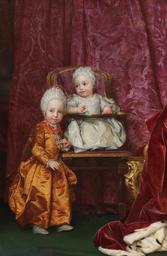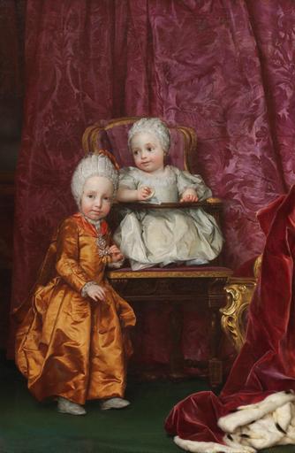 | Keywords: Maria Karolina and Ferdinand of Austria.jpg Artwork Creator Anton Raphael Mengs Retrato de los archiduques Fernando III de Toscana 1769-1824 y María Ana Fernanda de Austria 1770-1809 que fueron hijos del emperador Leopoldo II del Sacro Imperio Romano Germánico y de la emperatriz María Luisa de Borbón 1770 oil on canvas Size cm 96 147 Institution Museo del Prado accession number P02192 object history credit line https //www museodelprado es/coleccion/obra-de-arte/los-archiduques-fernando-y-maria-ana-de-austria/31ecd330-4994-4562-846b-6190be27df39 PD-old-100 http //www museodelprado es/coleccion/galeria-on-line/galeria-on-line/obra/los-archiduques-fernando-y-maria-ana-de-austria/ no_cache 1 <gallery>Archduke Leopold and Archduchess Maria Anna jpg</gallery> DEFAULTSORT 1770; Habsburg-Lorraine children Ferdinand III Grand Duke of Tuscany Archduchess Maria Anna of Austria 1770-1809 Portrait paintings by Anton Raphael Mengs Paintings by Anton Raphael Mengs in the Prado Museum 18th-century portrait paintings in the Prado Museum Paintings of people of Salzburg state 1770s oil on canvas paintings in Spain Portrait 1770 oil on canvas paintings Portrait 1770 portrait paintings from Germany M 18th-century childhood in painting 18th-century family portraits of royalty 18th-century oil portraits of children at full length Badges of the Order of the Golden Fleece in portrait paintings Chairs in portrait paintings Children with fur in art Ermine clothing in art Paintings of boys' dresses Portrait paintings of standing children Portraits of siblings Portraits wearing caps Portraits with 2 persons Red drapery in portrait paintings Satin clothing in art Young siblings in art |