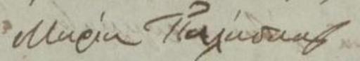 | Keywords: Maria Palasca letter to Colettis 1836.jpg αρίας Παλάσκα α ό ε ιστολή της ρος τον Ιωάννη Κωλέττη του 1836 στην ο οία αναφέρει στις ρώτες δυο σελίδες στον Κωλέτη ότι της λεί ουν τα αιδιά της Ανθούσα και Λεωνίδας και στέλνει χαιρετίσματα στον Αλέξανδρο Ρουζιού τον άνδρα της Ανθούσας en Signature of Maria Palasca from a letter to John Colettis dated 1836 In this letter she mentions that she misses her children Anthoussa and Leonidas and sends her greetings to Alexandre Roujoux Anthoussa's husband 1836-10-15 http //psifiakaarxeia academyofathens gr/rec asp id 68848 General State Archives of Greece Γενικά Αρχεία του Κράτους αρία Παλάσκα Maria Palasca other versions PD-old-70-1923 Uploaded with UploadWizard Signatures |