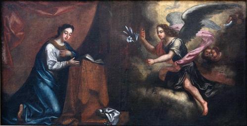 | Keywords: Mariä Verkündung (Mersch).jpg artwork de de Mariä Verkündung Mersch Flämische Schule Alex Langini Tableau Annonciation an der Mierscher Kierch aus De Mierscher Gemengebuet Nr 111 Mersch März 2015 S 34 unbekannter Meister de Goldenes Zeitalter Niederlande oil on canvas 17 Jahrh no Inscriptions Accession number other versions PD-100 Drawings of the Annunciation Interior of Église Saint-Michel Mersch People with flowers in art | ||||