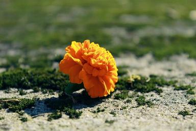 Keywords: marigold blossom bloom flower decoration decorative deco nature plant close moss mossy stone floor stone ground summer
