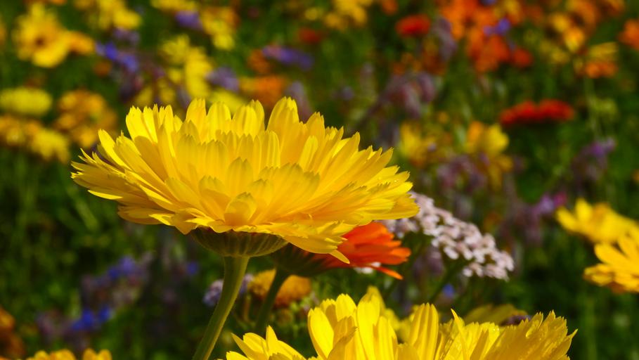 Keywords: marigold yellow blossom bloom flowers flower meadow field of flowers summer orange
