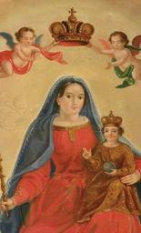 | Keywords: Marija z detetom (Truške).jpg author other date century 19 oil canvas Truške church side altar http //www traven si/4/index php option com_k2 view item id 457 cerkev-sv-kancijana-truske PD-old-100 Paintings by unknown painters in Slovenia 19th-century oil on canvas paintings in Slovenia 19th-century religious paintings in Slovenia Paintings of Madonna and Child in Slovenia Truške 19th-century paintings of Madonna and Child | ||||