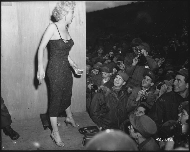 | Keywords: Marilyn Monroe, motion picture actress, appearing with the USO Camp Show, "Anything Goes," poses for the shutterbugs... - NARA - 531435.tif Scope and content General notes Use War and Conflict Number 1466 when ordering a reproduction or requesting information about this image 531435 Local identifier 111-SC-452342 Department of Defense Department of the Army Office of the Chief Signal Officer 09/18/1947 - 02/28/1964 Still Picture Records Section Special Media Archives Services Division NWCS-S National Archives at College Park 8601 Adelphi Road College Park MD 20740-6001 1954-02-17 Record group Record Group 111 Records of the Office of the Chief Signal Officer 1860 - 1985 Record group ARC 440 Signal Corps Photographs of American Military Activity compiled 1754 - 1954 Series ARC 530707 File unit File unit ARC Variant control numbers NAIL Control Number NWDNS-111-SC-452342 yes Other versions NARA-cooperation PD-USGov Marilyn Monroe and the USO United Service Organizations People with cameras People in 1954 Fashion in 1954 February 1954 in the United States Photographs taken on 1954-02-17 |