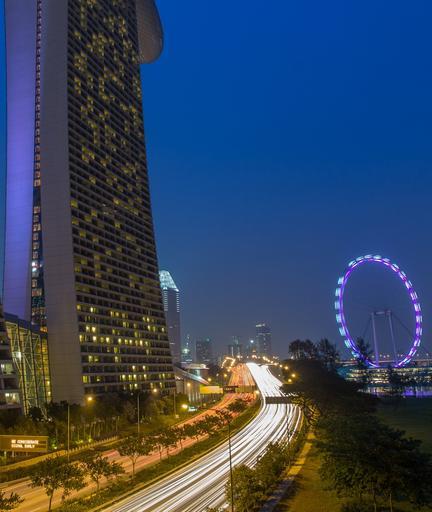 Keywords: marina bay sands marina singapore landmark blue hour flyer ferris wheel