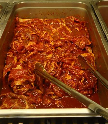 Keywords: Marinated pork sliced butt at Asian supermarket in New Jersey.jpg en Marinated pork sliced butt as seen in an Asian supermarket in New Jersey 2012-07-23 own Tomwsulcer cc-zero Uploaded with UploadWizard Pork-based food Marinated food