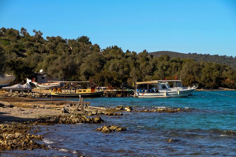 Keywords: marine blue nature landscape green forest tree green field boats boat peace bodrum