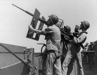 Keywords: Marines aboard USS Enterprise (CV-6) manning 20 mm AA-gun.jpg Marines from Big E's detachment man a 20mm anti-aircraft gun for gunnery practice in the South Pacific 5 May 1943 http //www cv6 org/noumea/default asp uri detail/barr-img-281 cv6 org 1943-05-05 William T Barr US Navy photographer source http //lcweb2 loc gov/cocoon/vhp-stories/loc natlib afc2001001 10509/transcript ID sr0001 PD-USGov-Military-Navy Aboard USS Enterprise CV-6 Oerlikon 20mm