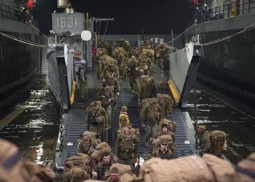 | Keywords: Marines disembark LCU 1631 150401-N-EI510-222.jpg en 150401-N-EI510-222 WATERS EAST OF THE KOREAN PENINSULA April 1 2015 Marines attached to the 31st Marine Expeditionary Unit MEU disembark Landing Craft Utility LCU 1631 assigned to Naval Beach Unit NBU 7 aboard the amphibious transport dock ship USS Green Bay LPD 20 U S Sailors and Marines from the Bonhomme Richard Amphibious Ready Group ARG and the 31st Marine Expeditionary Unit MEU are participating in the Korean Marine Exchange Program KMEP in the Republic of Korea ROK with the ROK marine corps and navy The Bonhomme Richard ARG is comprised of the amphibious assault ship USS Bonhomme Richard LHD 6 the amphibious transport dock ship USS Green Bay LPD 20 the amphibious dock landing ship USS Ashland LSD 48 and the embarked 31st MEU U S Navy photo by Mass Communication Specialist 3rd Class Scott Barnes/Released 2015-04-01 Seaman Scott Barnes https //www dvidshub net/image/1852270 150401-N-EI510-222 2015-04-02 04 09 USS GREEN BAY WATERS EAST OF THE KOREAN PENINSULA AT SEA PD-USGov-Military-Navy 31st Marine Expeditionary Unit USS Ashland LSD-48 USS Bonhomme Richard LHD-6 USS Green Bay LPD-20 Images from DoD uploaded by Fæ |