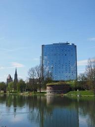 Keywords: maritime hotel ulm home mirroring facade building architecture danube reflection river water