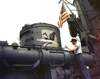 | Keywords: Mark 15 torpedo tube mount aboard a Fletcher-class destroyer c1943.jpg View of a Mark 15 torpedo tube mount aboard a U S Navy Fletcher-class destroyer showing a personal insignia on the cupola corc ain the autumn of 1943 The destroyer is probably USS O'Bannon DD-450 Official U S Navy photo https //www history navy mil/our-collections/photography/numerical-list-of-images/nhhc-series/nh-series/80-G-K-03000/80-G-K-3977 html 80-G-K-3977 from the U S Navy http //www history navy mil Naval History and Heritage Command autumn 1943 U S Navy PD-USGov-Military-Navy USS O'Bannon DD-450 Mark 15 torpedo World War II color photographs of the Pacific War in 1943 |