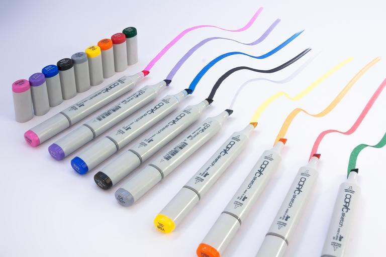 Keywords: marker felt tip pens writing implement character device colorful color leave draw sketch graphic design tool open try out colour sample copic